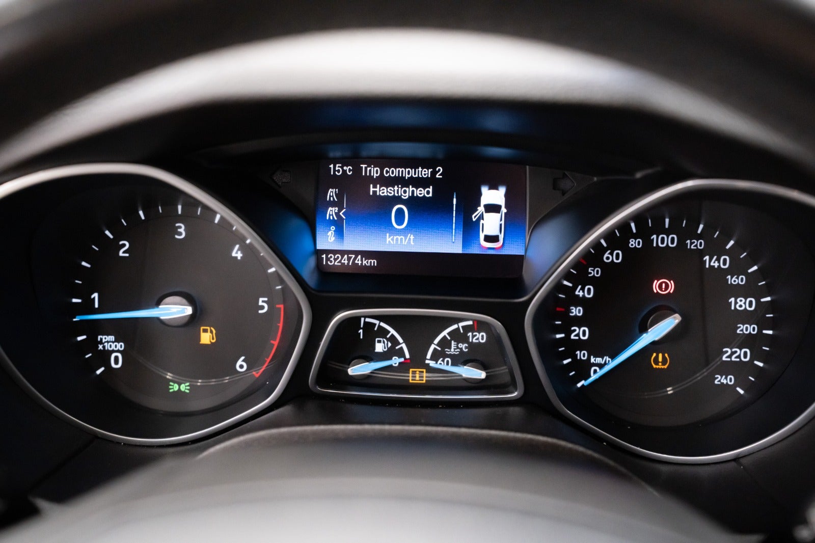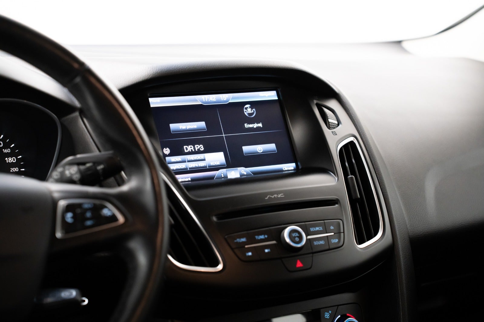 Focus - Tågeforlygter, Focus - Dæktrykovervågning, Focus - Bluetooth til håndfri mobiltelefoni og stemmestyring, focus - Opvarmede forsæde, Focus - Førersæde - højdejusterbart, Focus - 3-eget læderrat, 4-vejs justerbart og lædergearknop, Focus - Bagagerumsdækken (kun stationcar), Focus - 12V strømudtag i bagagerum (kun stationcar), Focus - MyKey (2 flipnøgler), Focus - Trip-/brændstofcomputer med Eco Mode, Focus - ISOFIX-barnesædebeslag på de 2 yderste bagsæder, Focus - Forlygtevaskere,